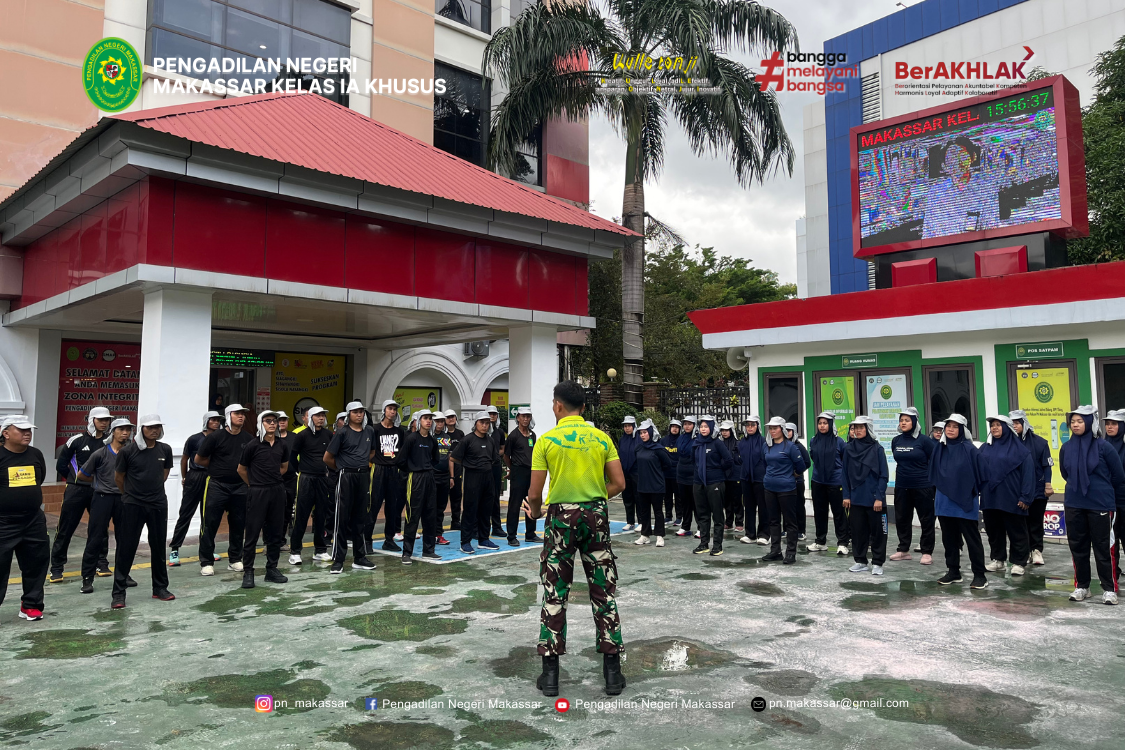 Suasana Pengadilan Negeri Makassar tampak berbeda pada Kamis, 5 Februari 2026 Pada hari tersebut, Pengadilan Negeri (PN) Makassar bekerja sama dengan personel Pengadilan Militer (Dil Mil) Makassar melaksanakan kegiatan Pembinaan dan Pelatihan Peningkatan Kedisiplinan dan Penguatan Integritas Aparatur pada Pengadilan Negeri Makassar.