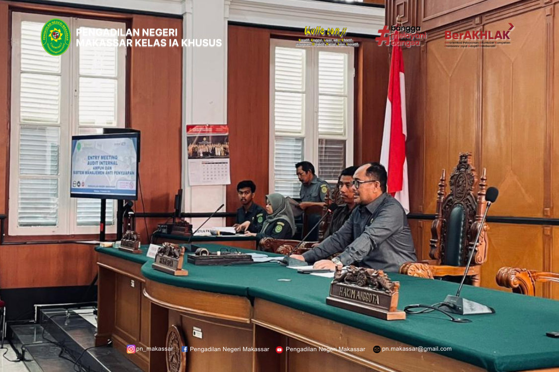 Entry meeting Audit Internal Ampuh Dan Sistem Manajemen Anti Penyuapan Tahun 2025 Kegiatan ini di pimpin langsung oleh Wakil Ketua Pengadilan Negeri Makassar, Bpk.YM. Mashuri Effendie, S.H.,M.H. dan Bpk.YM. Jimmy Ray Ie, S.H.