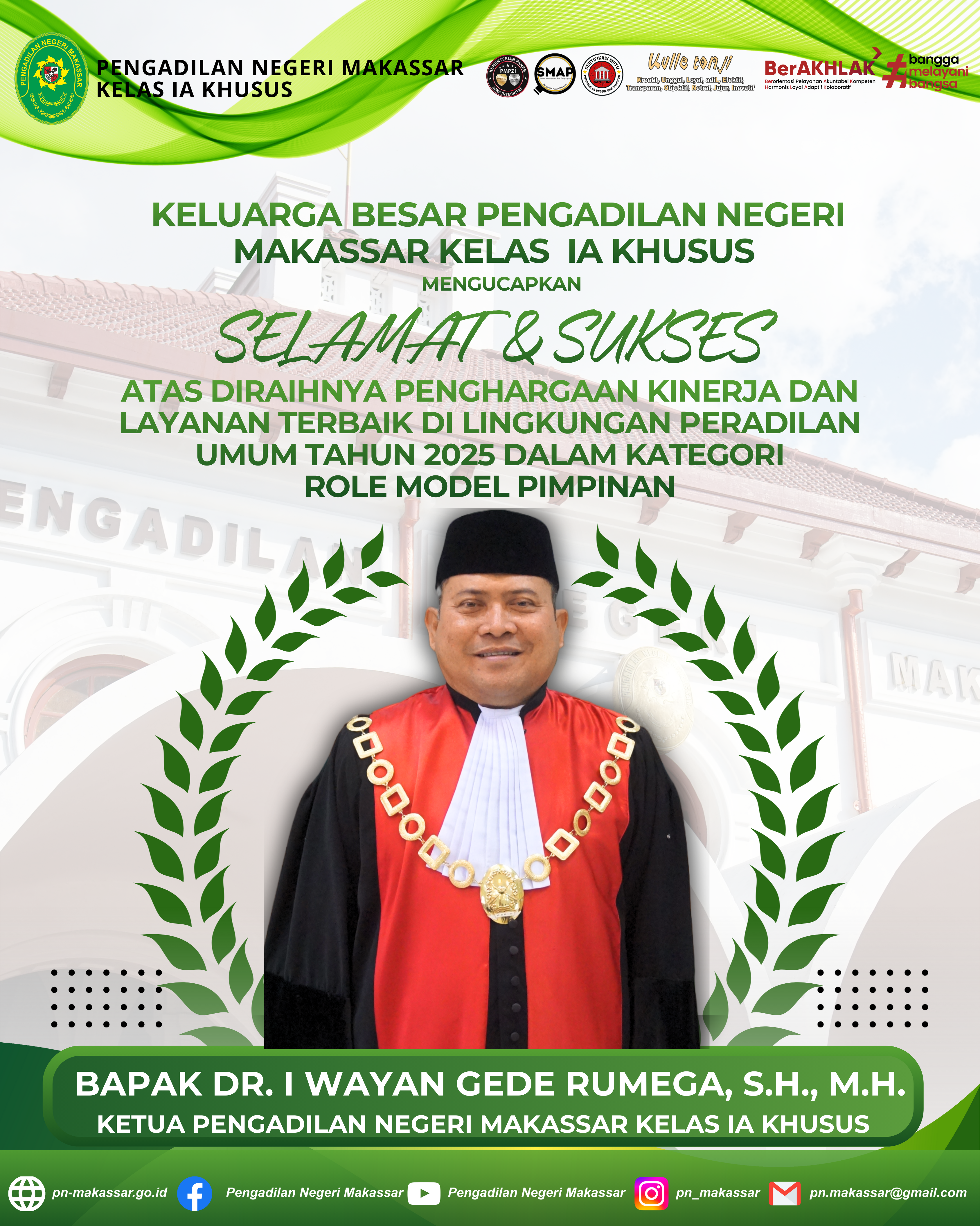 Selamat & Sukses Kepada Bpk.YM.Dr. I Wayan Gede Rumega, S.H., M.H. Atas diraihnya Penghargaan Kinerja dan Layanan Terbaik di Lingkungan Peradilan Umum Tahun 2025 dalam kategori ROLE MODEL PIMPINAN