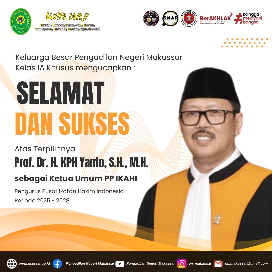 Sukses atas terpilihnya YM Prot. Dr. H. KPH Yanto, S.H., M.H. sebagai Ketua Umum Pengurus Pusat Ikatan Hakim Indonesia (PP IKAHI) Periode 2025-2028.