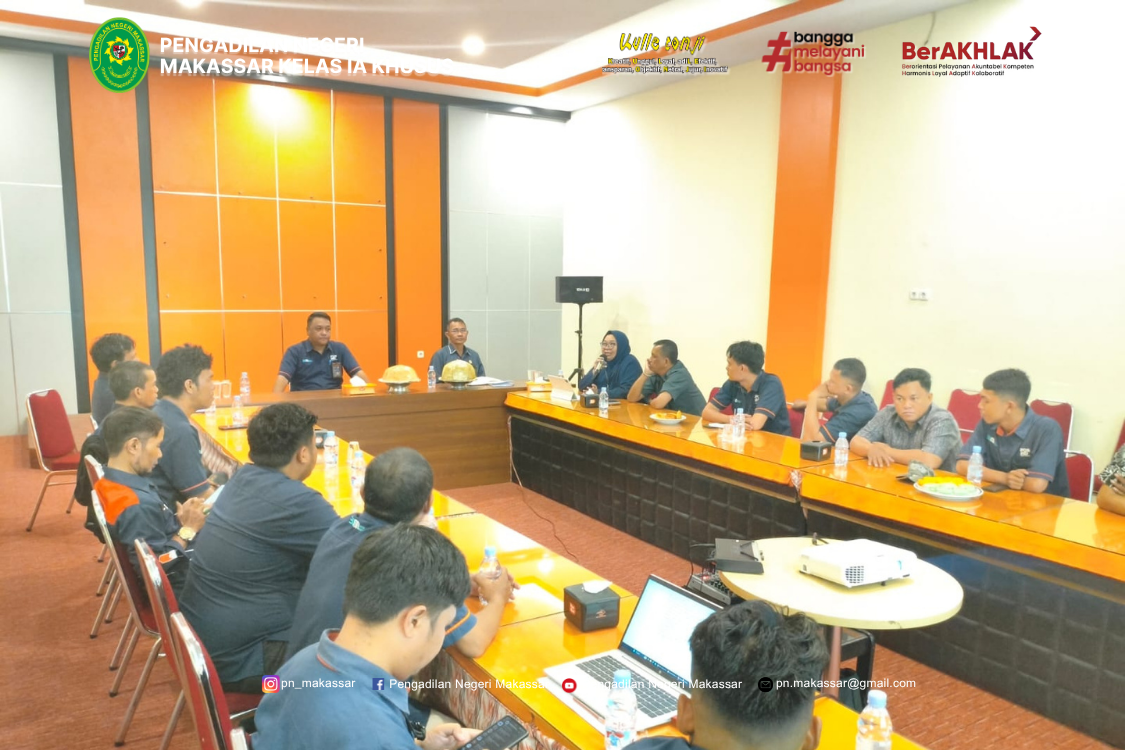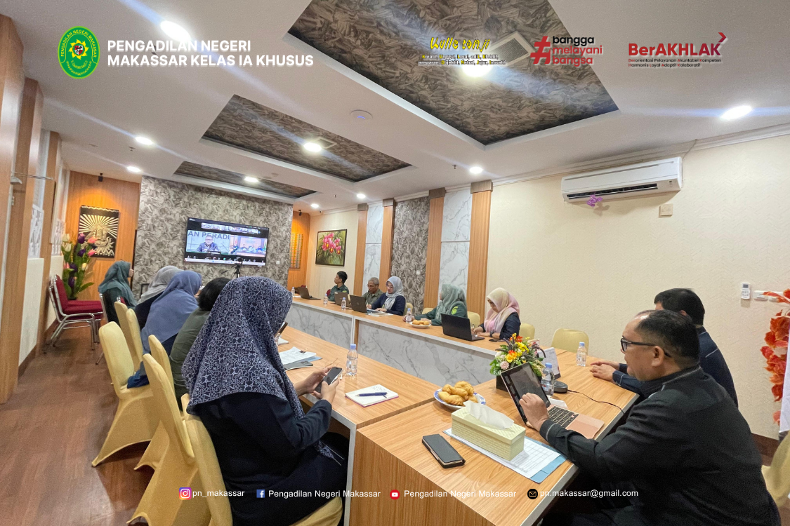 Makassar - Selasa, 14 Oktober 2025 Bertempat di Ruang Media Center Pengadilan Negeri Makassar, Sosialisasi dan Implementasi Sistem Akuntabilitas Kinerja Instansi Pemerintah (SAKIP) di Lingkungan Peradilan Umum dilaksanakan secara virtual melalui aplikasi Zoom Meeting. Sosialisasi ini merupakan tindak lanjut dari Surat Ditjen Badilum Nomor 274/DJU/UND.OT1.6/X/2025 Tanggal 13 Oktober 2025 yang diikuti oleh Wakil Ketua Pengadilan Negeri Makassar, Sekeretaris, Kabag Umum, Para Panmud dan Kasubbag serta seluruh Tim SAKIP Pengadilan Negeri Makassar.