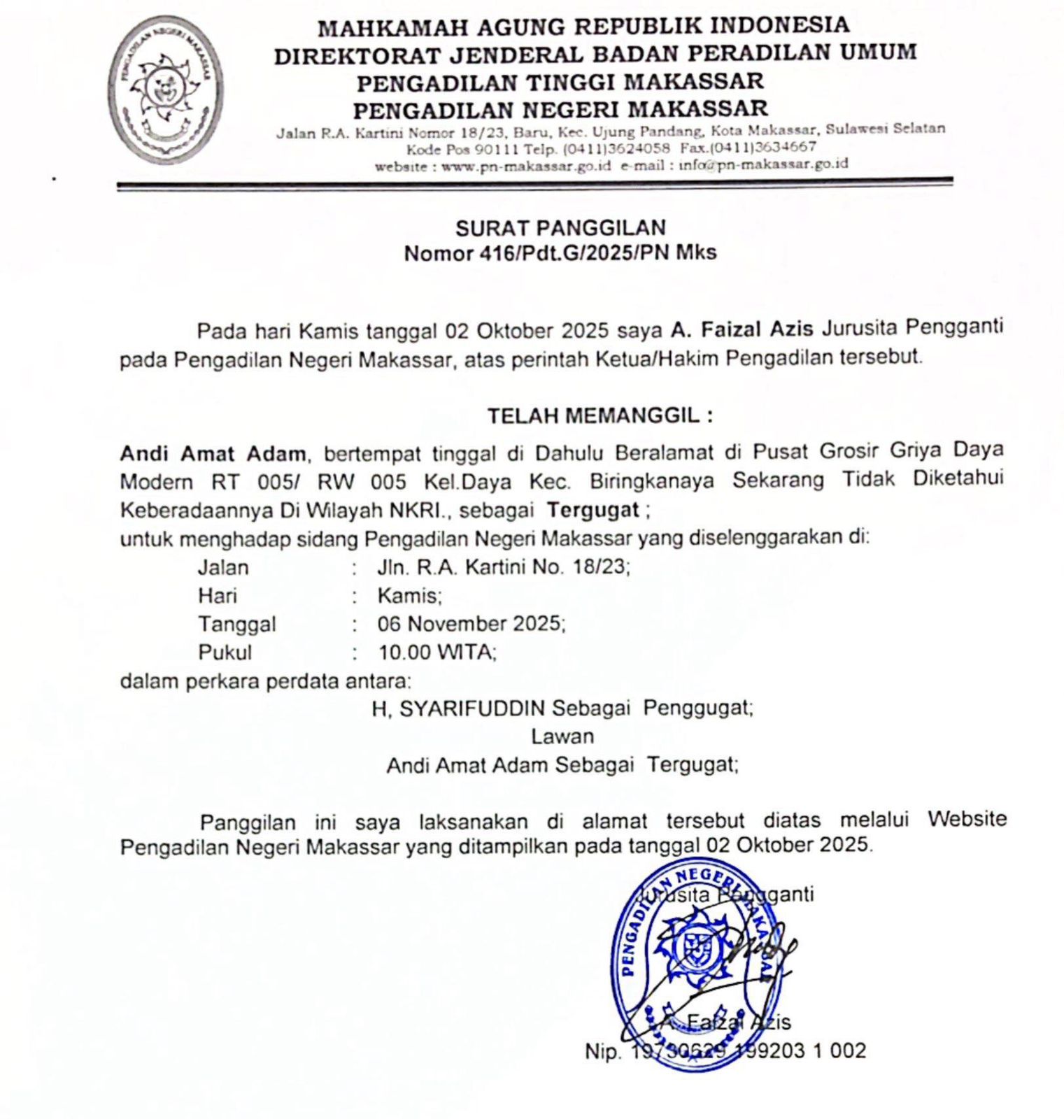 Pengumuman Non tender Pekerjaan Pengadaan Pakaian Dinas Pengadilan Negeri Makassar Tahun Anggaran 2025