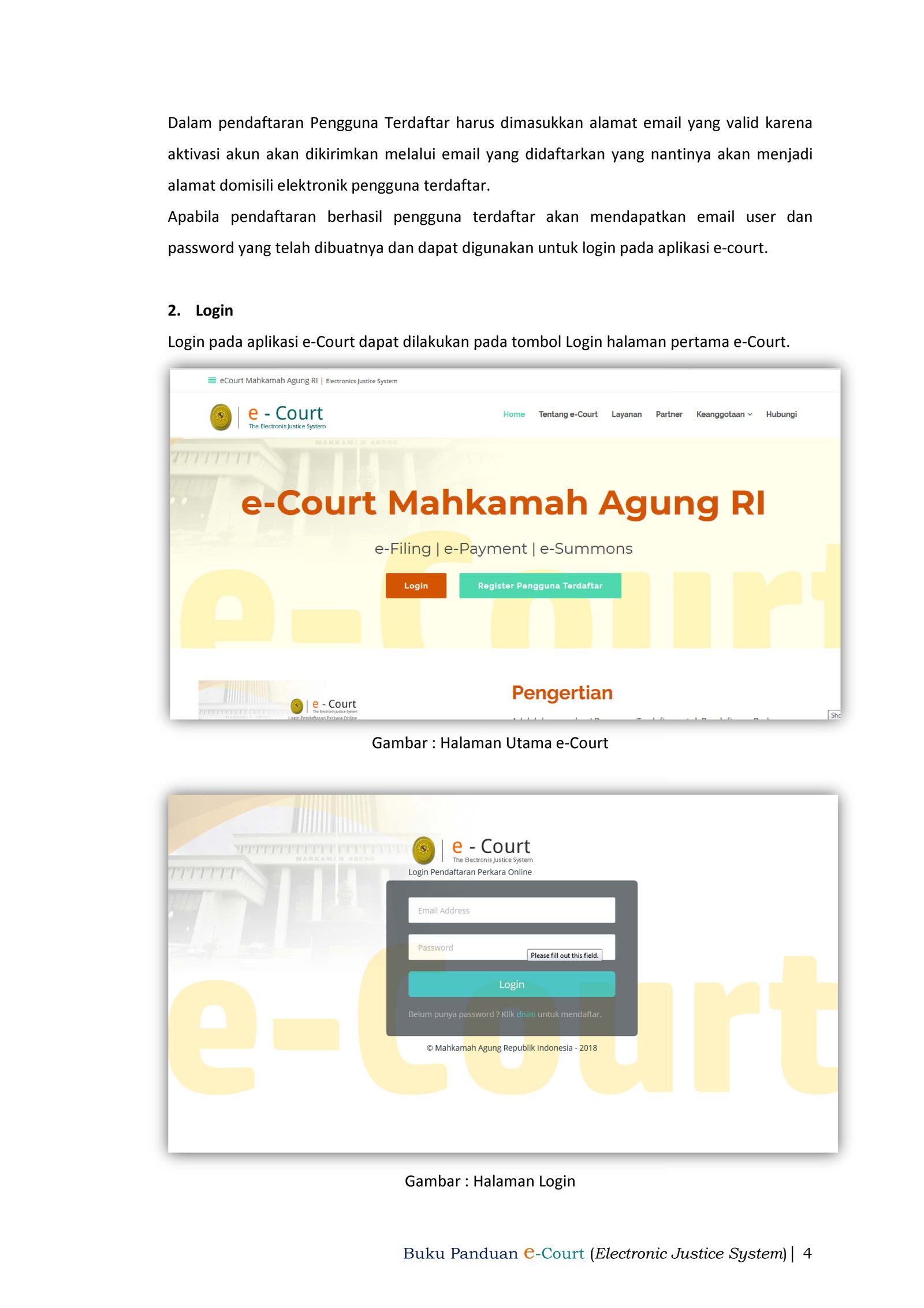 Panduan Pendaftaran Online E - Court untuk Pengguna Terdaftar Detail Kategori: Ecourt Ditulis oleh Administrator Dilihat: 1041