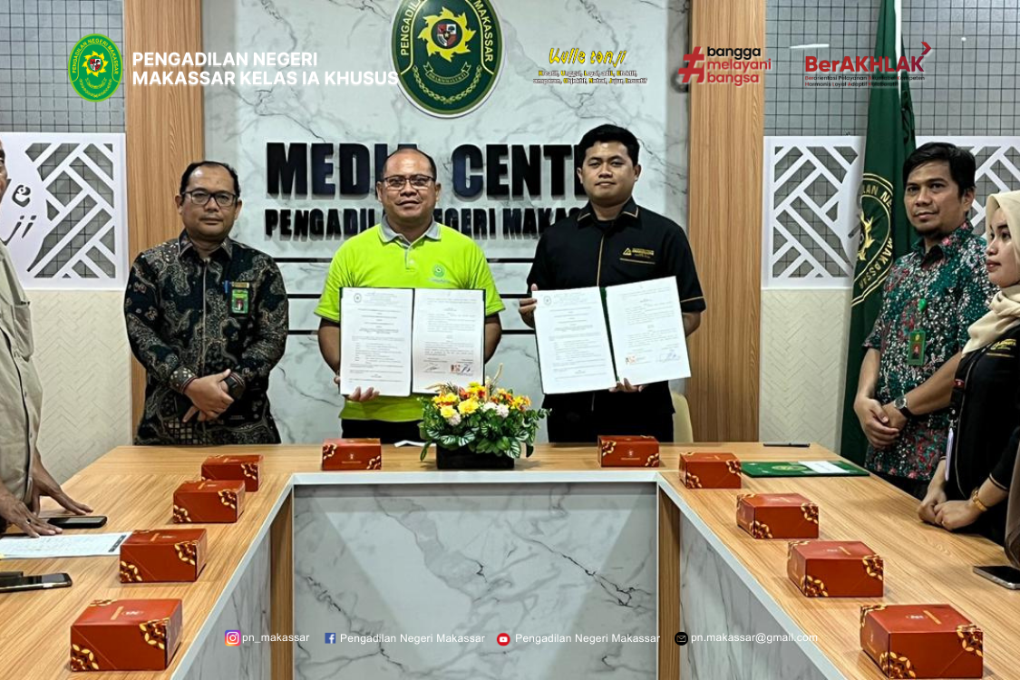 bertempat di Ruang Media Center Pengadilan Negeri Makassar, Ketua Pengadilan Negeri Makassar Dr I Wayan Gede Rumega, S.H.,M.H dengan didampingi Wakil Ketua Pengadilan Negeri Makassar Mashuri effendie, S.H.,M.H melaksanakan penandatanganan MoU dan Pakta Integritas Layanan POSBAKUM
