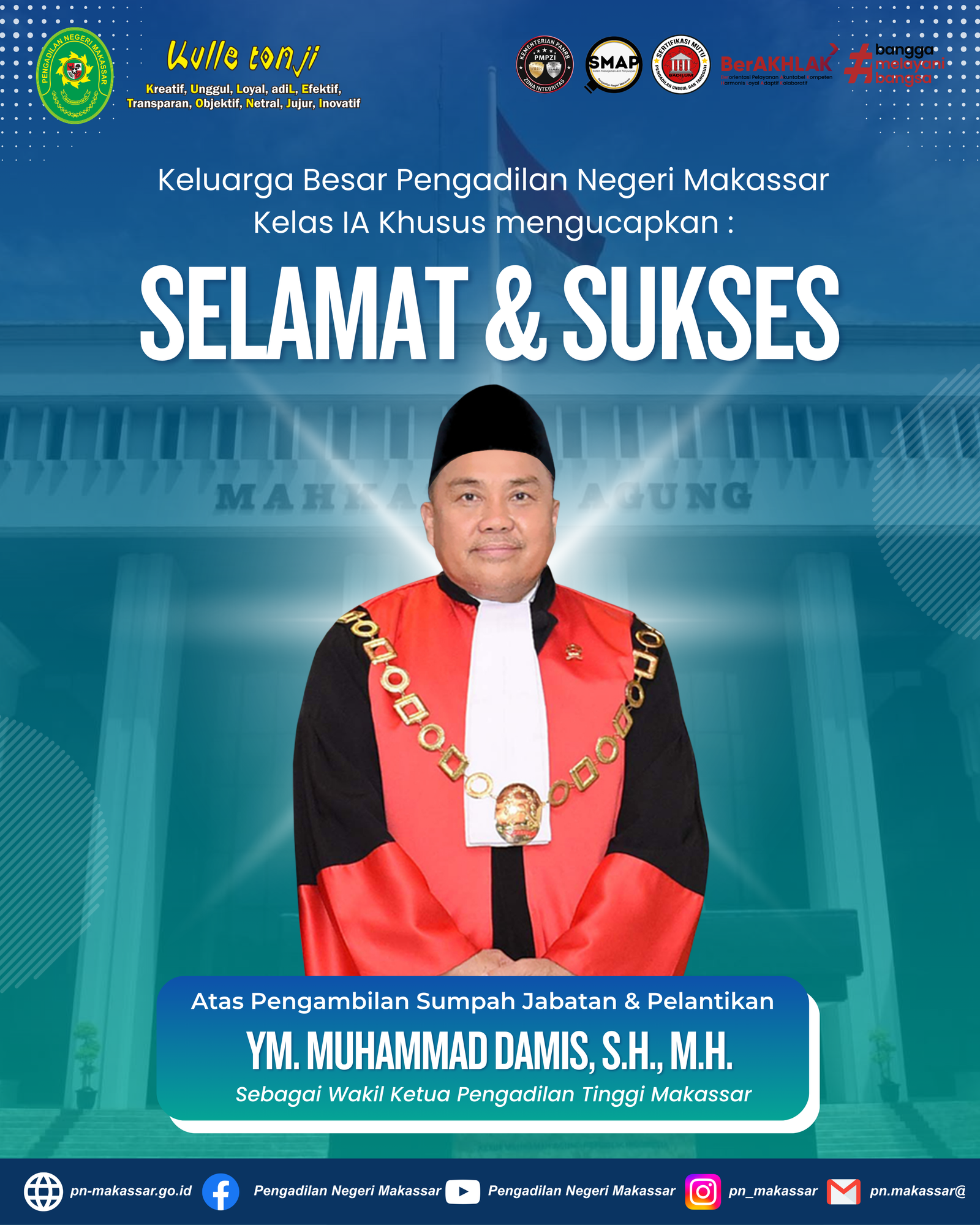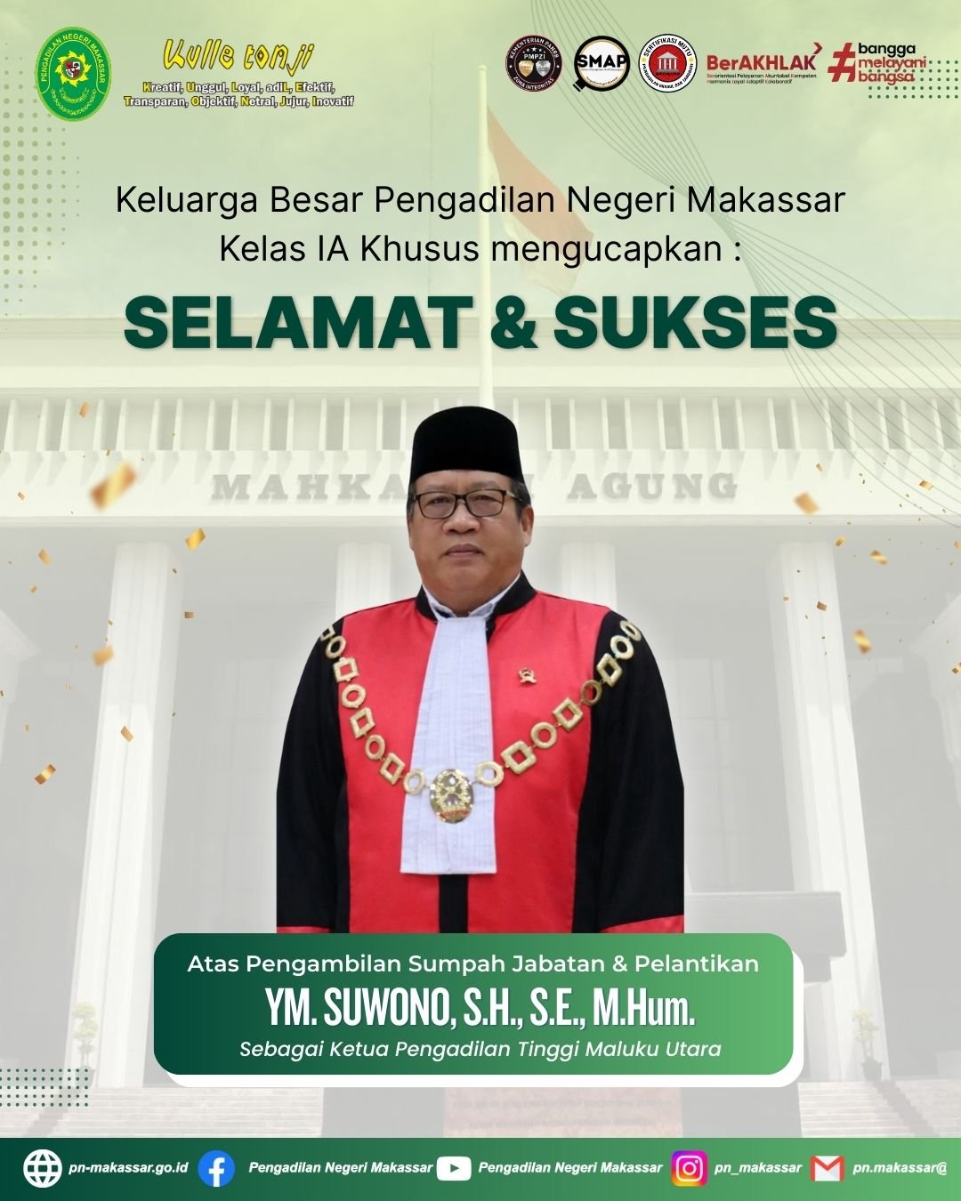 Sehubungan dengan cuti bersama dan tahun baru imlek, maka Pelayanan di Kantor Pengadilan Negeri Makassar Kelas IA Khusus Tutup Sementara pada hari senin & selasa, tanggal 16 - 17 Februari 2026 dan akan buka kembali pada hari Rabu, tanggal 18 Februari 2026